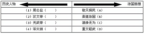 (1)治国思想一般是主流意识形态的反映,对国家社会影响极大。请将下列人物与其治国思想一一对应。(8分)