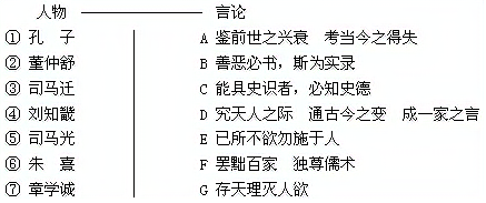 ①司马光 ②章学诚 ③司马迁 ④朱熹 ⑤孔子 ⑥刘知畿 ⑦董仲舒