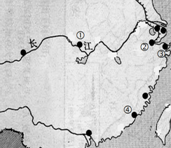 (2015·浙江宁波高三期末·7)鸦片战争后,中国被迫开放一系列通商口岸。下图中属于19世纪90年代被迫开放的通商口岸是( )