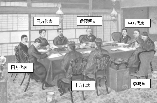 (2017·北京昌平高三期末·10)下图是日本人所画的《下关讲和会谈》, 这幅画的构图( )