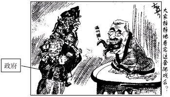 材料一 在1920年代末期,世界经济危机的来临,日本经济受到沉重的打击。1930—1932年日本的失业率达到整个工业界劳动力的15%,城市的失业率更高。不少军官对日本的内政外交愈来愈感到不满,他们不满政党采取的协调外交,认为这是懦弱的表现。 清朝覆亡后,中国陷于军阀割据的局面。中国国民党北伐成功,1928年在南京成立统一的国民政府,表示将带领中国走向富强。1930年代初,日本帝国主义者认为,与中国的战争已是无可避免,而且战事越早进行,将越有利。 材料二 下图是一幅题为 “老虎吞噬小人 ”的漫画,刊登于1932年《玲珑杂志》。
