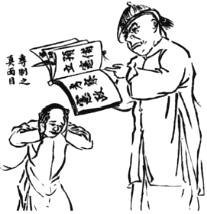 ”高三上学期第三次考试·7)1908年,马星驰在《神州日报》上发表了下图漫画《图穷匕见》。该漫画意在( )