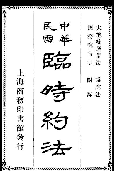 (2018·河北邢台高一上学期第二次月考题·39)下面是由上海商务印书馆发行的《中华民国临时约法)的文本封面图。该书( ) |