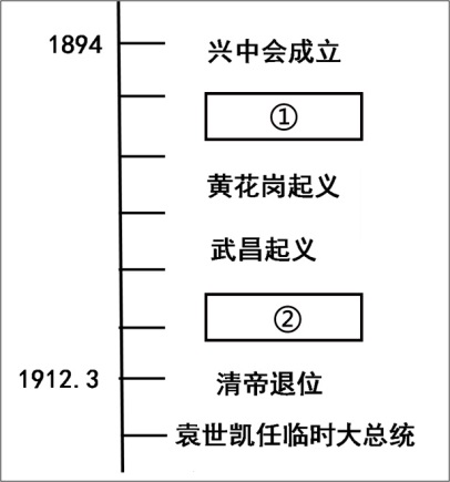 (2016·北京海淀高一第一学期期末·7)某同学对辛亥革命的主要史实通过画时间轴的方式呈现出来,图中①②分别为( )