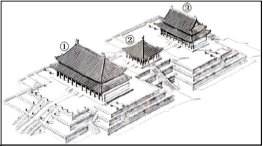 (2019·浙江教育绿色评价联盟高三适应性考试·23)故宫的建筑形制严格按照封建宗法礼制来设计建造,如宫殿顶盖的形制、台基的层次、御路石的铺设等等无不如此。下图所示为故宫某处建筑群,其中解说有误的是( )