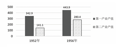 (2018·山东青岛一模·31)下图为中国1952—1956年主要经济指标发展变化图(单位:亿元),这反映了( ) |