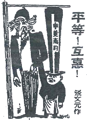 (2022·安徽省合肥市一模·14)下图为1946年11月发表的一幅漫画《平等!互惠!》。该漫画( )