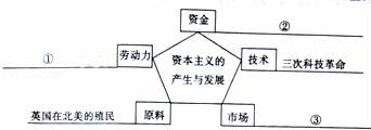 (2016·河南新乡一模·24)(6分)资金、市场、原料、劳动力和技术是资本主义产生和发展的五个重要的因素,每一次资本主义的重大进步都是围绕着这五个因素的开拓与调整。结合图示探究问题。请回答: (1)根据提示,将资本主义在发展过程中获取所需因素的事件填写完整。 |