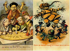 (2017·浙江温州十校联合体高二第一学期期末·6)历史漫画往往是历史的一面镜子。下列各项,与这两幅历史漫画(下图)所反映的历史事件无直接关联的是( )