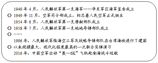 (2017·山西省·9)小丽同学查阅建国以来我国军队建设的相关资料后,制作了下面的大事年表。据此,她对军队建设所起的作用得出了如下结论,其中理解有误的是( )