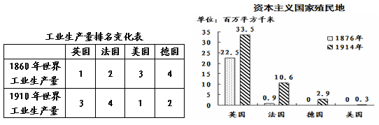【科技改变生活】 (1)三次科技革命中,交通工具的创新改变了人们的出行方式,完成下列三次科技革命的表格。(2分) 材料一 工业革命以后,产生了工业资产阶级和工业无产阶级两个主要的对立阶级……《共产党宣言》的发表,开辟了国际工人运动和社会主义运动的新局面,成为世界无产阶级的锐利思想武器。 ——摘自北师版初中历史九年级下册 (2)在马克思主义理论的指导下,人类历史上建立的第一个代表工人阶级利益的政权是什么?(1分)【科技改变世界】 材料二 19世纪中期,完成工业革命后的英国,生产效率和质量大大提高,强大的工业生产能力需要寻找广阔的海外市场和原料产地。为此,英国把侵略的矛头指向中国,借口林则徐的虎门销烟发动了鸦片战争。 ——摘编自历史教学参考 (3)鸦片战争后中国的社会性质发生了怎样的变化?(1分)材料三 (4)结合材料三中的表格和柱状图,分析第一次世界大战爆发的根本原因。(1分) ——摘编自历史教师用书 (5)你知道经济全球化最早开始于哪一事件?(1分)列举两例当今我国积极应对经济全球化的重大举措。(1分) |