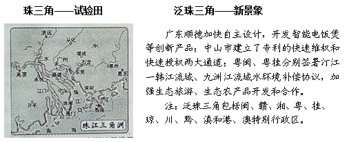 (2016·浙江绍兴·24)(12分)忆往昔,南海边响起春雷;看今朝,南中国再涌春潮。阅读材料,回答问题。 (1)改革开放初期,我国在珠江三角洲地区设置了哪些对外开放的“试验田”?从地理位置角度分析它们成为“试验田”的原因。(6分) |