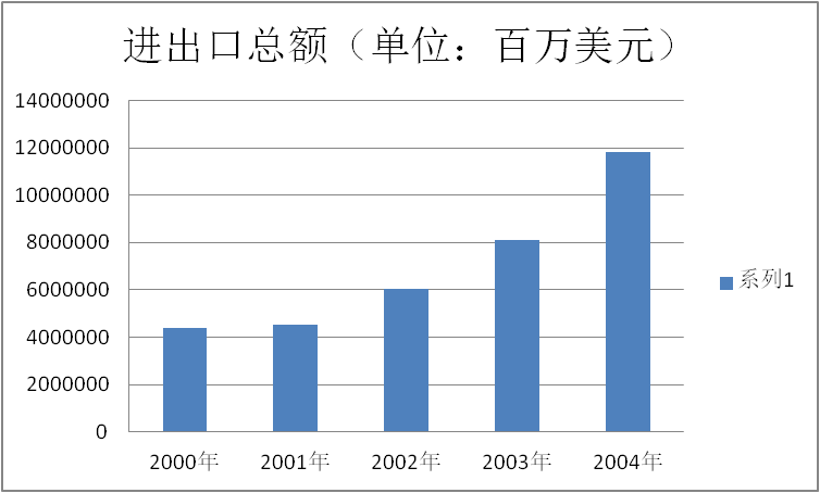 (2019·重庆B卷·12)下图是2000~2004年中国进出口贸易统计图。2001年以后,我国进出口总额出现显著变化的主要原因在于( ) |