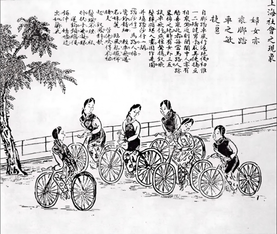 “上海社会之现象妇女亦乘脚踏车之敏捷