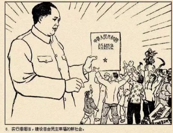 材料 图像叙事:连环画的新生 1950年,中央文化部成立连环画工作委员会,对全国连环画的创作、出版、发行进行统一指导与管理。1952年,全国公私合营连环画出版社达30余家,形成了从创作到发行的完整产业链。至1955年,全国累计出版连环画超1.8万种,总印量突破8亿册,覆盖城乡各个群体。新式连环画在题材内容的丰富性和表现形式的多样性上做出了更多探索,这一时期,连环画充分运用 “正义之战 ”这一象征元素营造政治想象与爱国情感,如《新儿女英雄传》《少年游击队》等连环画作品;各出版机构根据国家需求编印了许多推动制度建设的连环画作品,如《共同纲领图解(3册)》《婚姻法图解通俗本》《怎样办合作社》等;同时,大批传统题材亦焕发出新的魅力,如《武松打虎》《屈原》《嫦娥奔月》等。