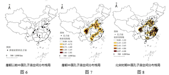 (2023·河北张家口高二下期末·9)图6,图7,图8分别是唐朝以前中国,唐朝时期中国,北宋时期中国孔子庙空间分布格局。其变化反映出北宋时期( )